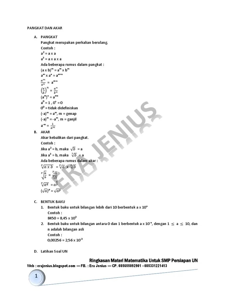 Kumpulan Soal Un Matematika Pangkat - Contoh Soal Bentuk Pangkat Akar Dan Logaritma 1 Idschool / Contoh bilangan rasional adalah 5 1 2 0 3 3 4.